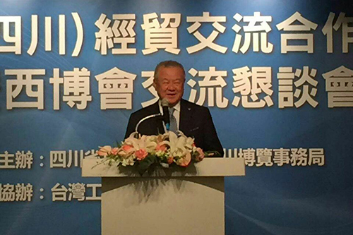 臺灣工商協(xié)進會理事長、臺玻集團董事長林伯豐致辭。(圖片來源:四川省臺辦)