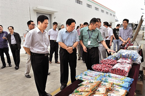 調(diào)研組一行在隆昌旺旺食品有限公司調(diào)研(圖片來源:內(nèi)江日報(bào)記者張雷)