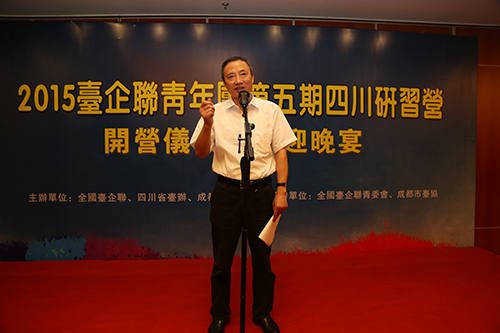 開營儀式上,四川省臺辦主任周敏謙和成都市臺辦主任戴浚分別致辭,對青年臺商朋友表示歡迎,并介紹了四川及成都的自然文化、社會經(jīng)濟發(fā)展情況。周明謙說,邀請各地臺商青年朋友到四川來舉辦研習營有四個原因:一是四川歷史淵源流長,是中華文明的發(fā)源地之一,從古至今都有著重要的歷史地位和戰(zhàn)略地位;二是四川是大陸西部的經(jīng)濟大省、文化大省,具有良好的區(qū)位優(yōu)勢,是大陸面向南亞、東南亞的開放前沿,是國家實施“一帶一路”的重要節(jié)點,是溝通中亞南亞東南亞的重要交匯點和交通走廊,擁有巨大的投資潛力和廣闊的發(fā)展前景;三是四川與臺灣有著日益密切的交流交往,歷史上四川與臺灣就有文緣、人緣、情緣,現(xiàn)在還有經(jīng)濟緣。近年來,川臺經(jīng)貿交流合作不斷擴大,截止2015年6月,全省注冊臺資企業(yè)1749家,項目投資總額142.24億美元,利用臺資122.59億美元,其中投資1000萬美元以上企業(yè)191家,形成了電子信息、食品飲料、建筑建材、百貨零售四大優(yōu)勢產(chǎn)業(yè)集群,臺資企業(yè)成為推動全省經(jīng)濟社會發(fā)展和對外開放合作的一支重要力量。四川已經(jīng)成為大陸西部臺資企業(yè)最多、投資額最大、擁有涉臺園區(qū)最多、開通直航最早、對臺航點最多、獲得臺灣同胞落地簽注最早的省份,省會成都是西部唯一連續(xù)13年躋身“臺商最推薦投資大陸城市”排行榜的城市。四是四川為臺灣青年朋友施展才華和抱負提供了廣闊舞臺。目前四川正在積極出臺政策,創(chuàng)建兩岸青年創(chuàng)業(yè)基地,有不少臺灣青年朋友已經(jīng)在四川開啟了自己的創(chuàng)業(yè)夢。歡迎更多的臺灣青年朋友能發(fā)現(xiàn)和抓住創(chuàng)新創(chuàng)業(yè)的大好機遇,到四川實現(xiàn)自己的青春創(chuàng)業(yè)夢想。