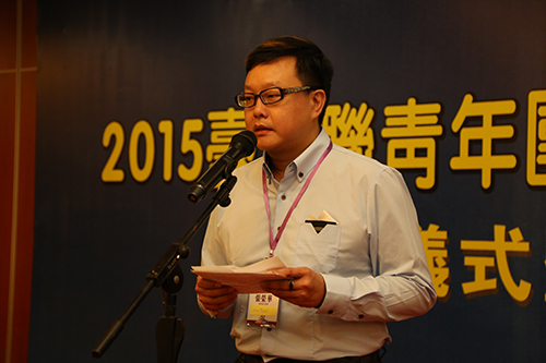 成都臺商協(xié)會青委會主委張榮華在2015全國臺企聯(lián)青年團四川研習營開營儀式上發(fā)言。(圖片來源:四川省臺辦)