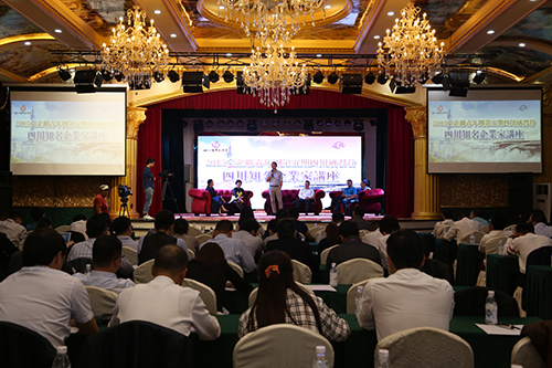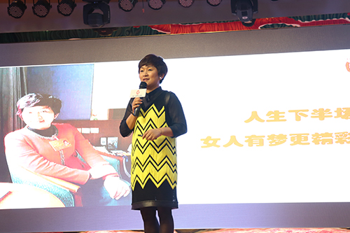 四川高福記食品有限公司董事長高銀江女士在四川知名企業家座談會上向川臺青年企業家作主題演講。