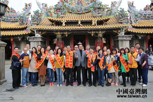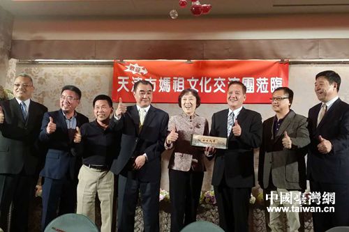 天津天后宮一行與北港朝天宮董事合影留念。(圖片來源:天津市臺辦)