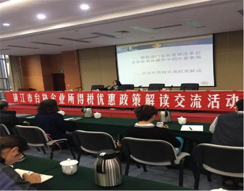 中國臺(tái)灣網(wǎng)10月29日鎮(zhèn)江訊 為更好地服務(wù)臺(tái)企發(fā)展,加強(qiáng)臺(tái)企與國稅部門的交流溝通,幫助臺(tái)企在守法經(jīng)營、依法納稅的基礎(chǔ)上,能夠在當(dāng)前新常態(tài)下利用各種優(yōu)惠政策降低企業(yè)生產(chǎn)成本,提高企業(yè)經(jīng)濟(jì)效益,10月28日,江蘇鎮(zhèn)江市臺(tái)協(xié)在政府市民大廳第六會(huì)議室舉辦企業(yè)所得稅優(yōu)惠政策解讀交流活動(dòng)。來自全市近60家臺(tái)企老總及財(cái)務(wù)負(fù)責(zé)人參加了交流活動(dòng)。這次活動(dòng)由鎮(zhèn)江市臺(tái)辦副主任,臺(tái)協(xié)常務(wù)副會(huì)長洪濤主持,鎮(zhèn)江市臺(tái)協(xié)林裕雀監(jiān)事長在活動(dòng)結(jié)束時(shí)代表臺(tái)資企業(yè)和臺(tái)商講話,感謝市國稅局長期以來對(duì)臺(tái)資企業(yè)的關(guān)心和支持。