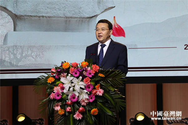 國家中醫(yī)藥管理局國際合作司司長兼港澳臺辦主任王笑頻發(fā)表主題演講《海峽兩岸中醫(yī)藥交流與合作》。(中國臺灣網(wǎng) 郜利敏 攝)