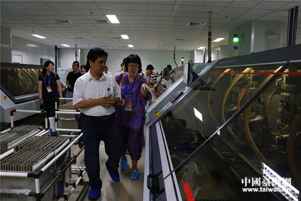 海峽兩岸媒體記者參訪入駐黃石的第一家臺資企業(yè)——滬士電子公司。(中國臺灣網(wǎng) 郜利敏 攝)