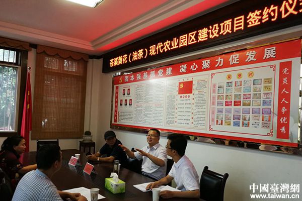 蒼溪黃花(油茶)現代農業園區建設項目簽約儀式現場。(圖片來源:廣元市臺辦)