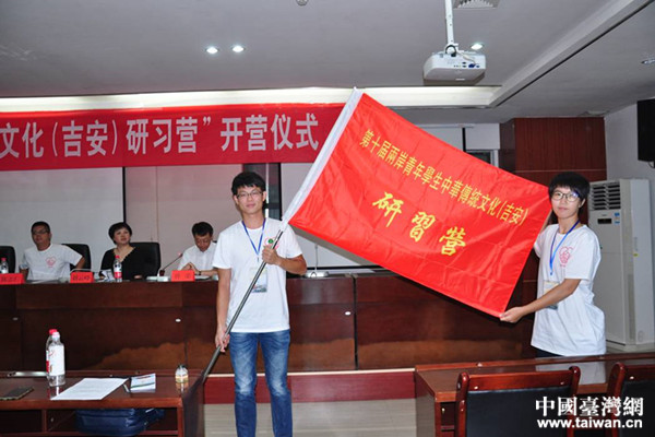 中國臺灣網7月26日吉安訊 近日,第十屆兩岸青年學生中華傳統文化(吉安)研習營在江西省吉安市舉行。來自臺灣地區的6所大學和吉安職業技術學院40余名大學生參加了此次研習營活動。吉安市人民政府副市長鄧淑斌,市臺辦主任劉云峰,吉安職業技術學院黨委書記歐陽亮、副校長段幼平、曾榮等出席開營儀式。