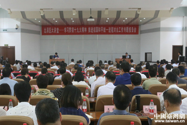 中國臺灣網(wǎng)7月27日北辰訊 為全面學習貫徹黨的十九大精神和習近平總書記新時代對臺工作重要思想,切實提高領導干部處理對臺問題的政策能力水平,不斷推進全區(qū)對臺工作再上新臺階,近日,天津市北辰區(qū)舉辦“北辰區(qū)大講堂——學習貫徹十九大精神 推進祖國和平統(tǒng)一進程”對臺工作專題報告會。區(qū)長王寶雨,區(qū)人大常委會主任王志平,區(qū)委辦公室主任陳健等區(qū)領導出席,全區(qū)處級領導干部約400人參加。報告會由區(qū)委常委、統(tǒng)戰(zhàn)部部長陳永義主持。