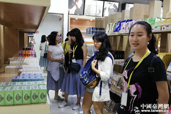 同學們在成都國際鐵路港“蓉歐薈”選購進口商品。(圖片來源:四川省臺聯)