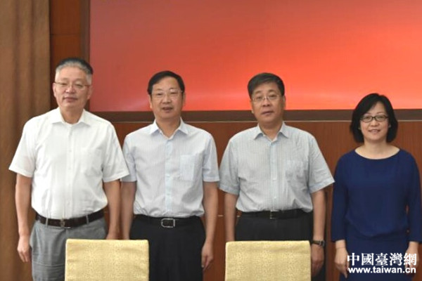 李文輝、朱芝松為“上海市臺胞服務中心閔行分中心”成立進行揭牌。(圖片來源:上海臺辦)