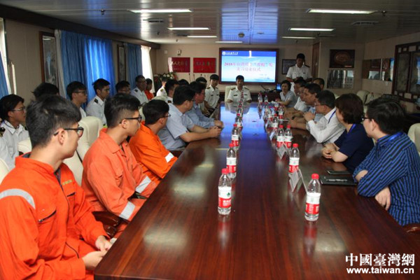 中國臺灣網8月9日大連訊 7月31日,2018年臺灣師生隨船實習項目結業(yè)儀式在遼寧省大連海事大學“育鯤”輪上舉行,國臺辦交流局局長黃文濤、大連市臺辦主任趙彤、國臺辦干部胡炎炎等出席儀式。