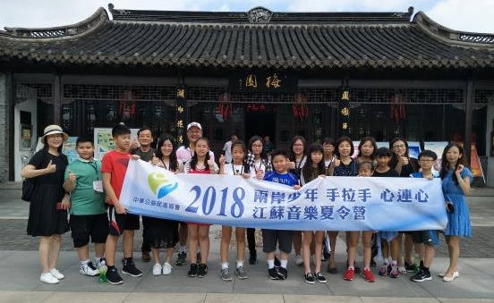 2018兩岸少年“手拉手 心連心 蘇臺音樂夏令營”成員合照。(圖片來源:泰州市臺辦)