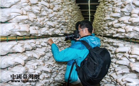 采訪團(tuán)深入生產(chǎn)廠房了解杏鮑菇生長(zhǎng)情況。(圖片來(lái)源:四川省臺(tái)辦)
