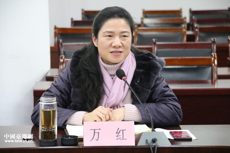 黃陂區(qū)人民政府副區(qū)長萬紅出席座談會并講話。(圖片來源:武漢市臺辦)