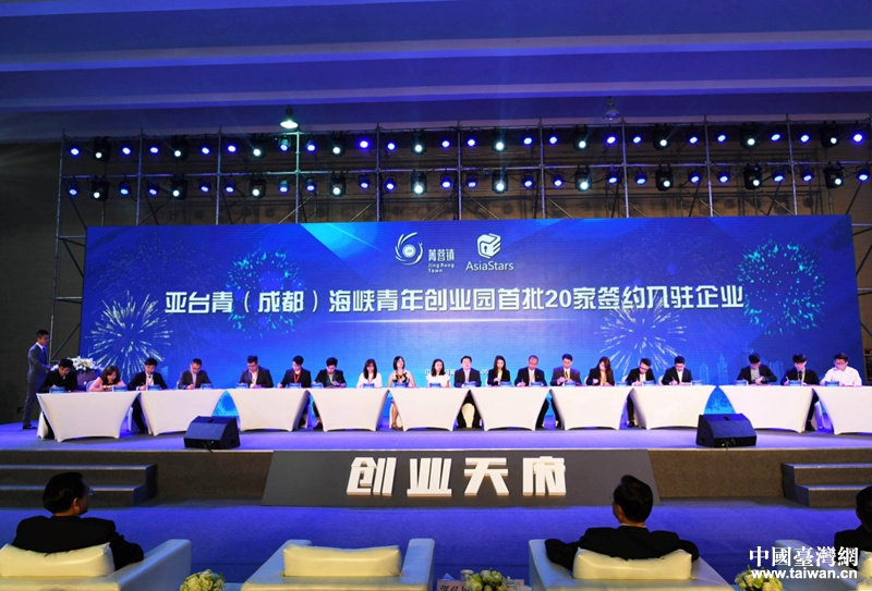 亞臺青(成都)海峽青年創業20家入駐企業簽約儀式。(圖片來源:四川省臺辦)