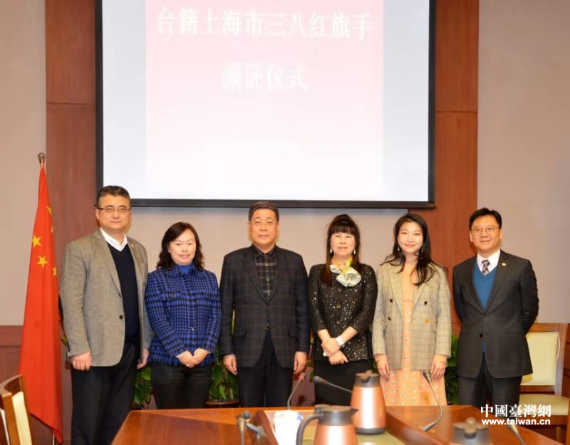 3月8日上午,上海市臺辦舉辦臺籍上海市三八紅旗手頒證儀式。市臺辦主任李文輝(左三)出席儀式。(圖片來源:上海市臺辦)