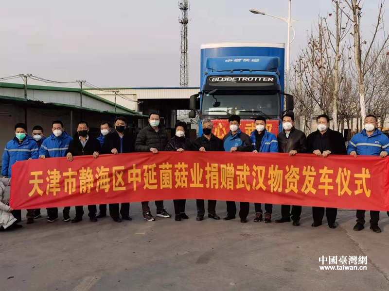 中國臺灣網2月4日訊 海峽兩岸,同根同宗同源,有著血濃于水的親情,近期爆發的新型冠狀病毒感染的肺炎疫情也時刻牽動著在津臺胞的心。2月1日下午,林次郎先生捐贈物資的運輸車輛從天津啟程直奔武漢。