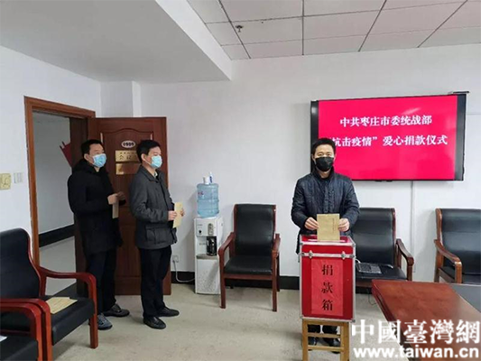 中國臺灣網2月24日訊 新型冠狀病毒感染的肺炎疫情暴發以來,棗莊市臺辦高度重視,密切關注疫情發展,不折不扣貫徹落實中央、省市工作部署,廣大干部與臺港澳同胞一道,戰疫情、保生產,勠力同心打響疫情防治阻擊戰,譜寫了一曲風雨同舟、患難與共、眾志成城的抗“疫”贊歌。