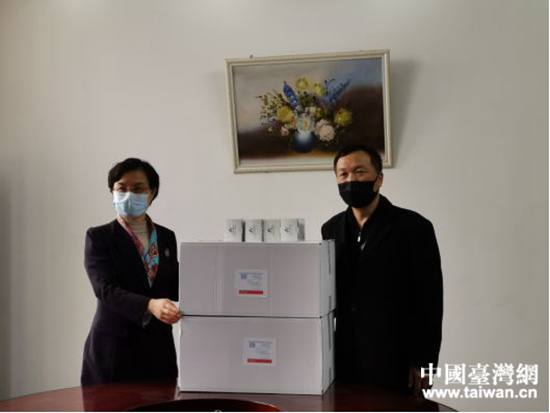 紹興市委常委葉衛(wèi)紅向紹興市臺協(xié)會贈送口罩、額溫儀等防疫物資。 (中國臺灣網(wǎng) 發(fā))