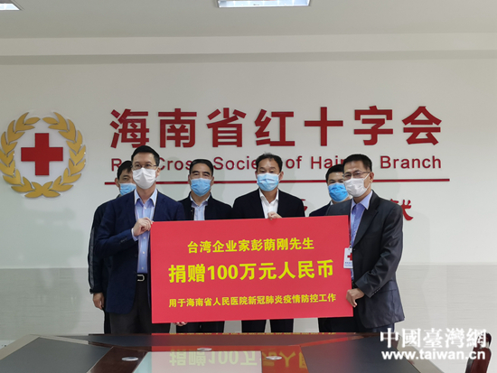 中國臺灣網2月27日訊 26日,受臺灣企業家、臺灣中國航運榮譽董事長彭蔭剛委托,海南省臺辦工作人員將彭先生捐贈的100萬元人民幣轉交海南省紅十字會,此筆善款將專項用于海南省人民醫院抗擊新冠肺炎疫情。這是截至目前臺胞為支援海南抗擊疫情捐贈的最大一筆款項。