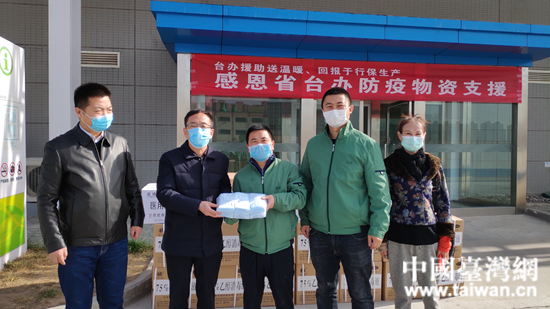 崔鵬沖代表省臺辦向蘭州統一食品有限公司贈送防疫物資。 (中國臺灣網 發)