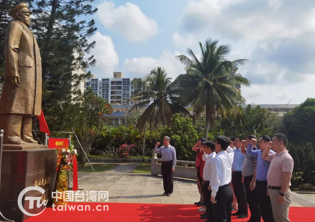 全體黨員在張云逸大將銅像前重溫入黨誓詞(圖片來源:海南省臺辦)