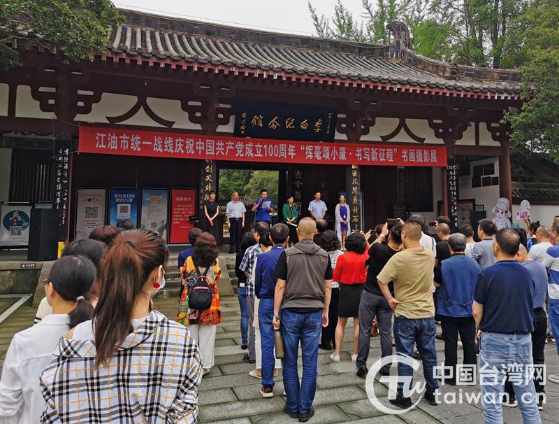 中國臺灣網6月22日訊 近日,四川綿陽江油市臺僑界人士在李白紀念館參加慶祝中國共產黨成立100周年“揮毫頌小康·書寫新征程”主題書畫攝影展開幕式。