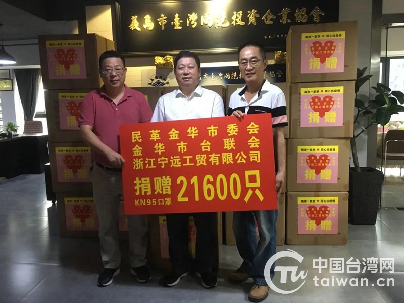 金華市臺(tái)聯(lián)會(huì)向義烏市臺(tái)協(xié)會(huì)捐贈(zèng)防疫口罩(圖片來源:金華市臺(tái)辦)