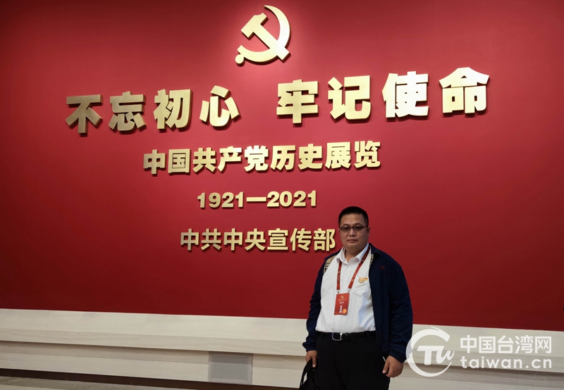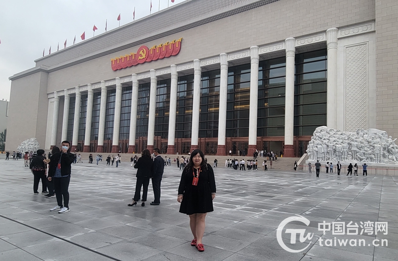 王孟筠在中國共產黨歷史展覽館前留影(圖片來源:廣西臺辦)