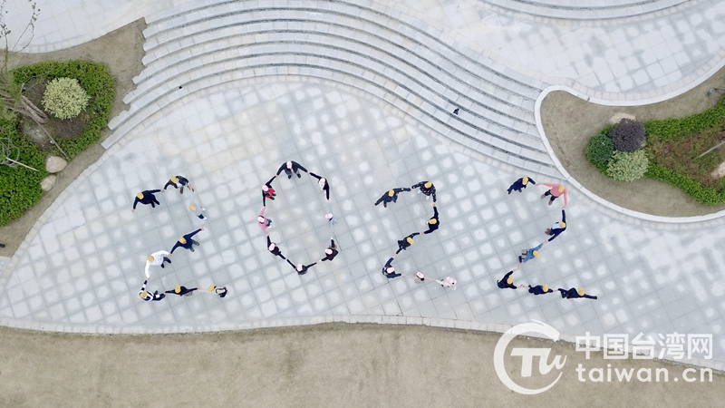 臺青手牽手擺出“2022”造型(圖片來源:杭州市臺辦)