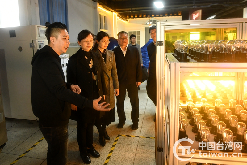 侯線紅(左二)在臺企南寧市宏彩照明科技有限公司生產車間調研。(圖片來源:廣西臺辦)