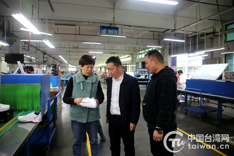 欽州市臺辦主任劉小剛(中)走訪臺資企業(yè)(圖片來源:廣西欽州市臺辦)
