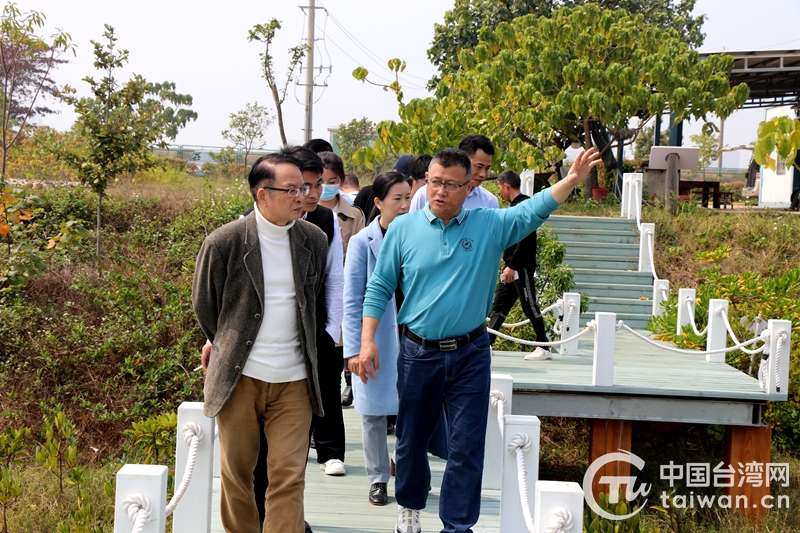 考察團一行參訪紅樹林研究中心創(chuàng)新基地(圖片來源:廣西北海市臺辦)