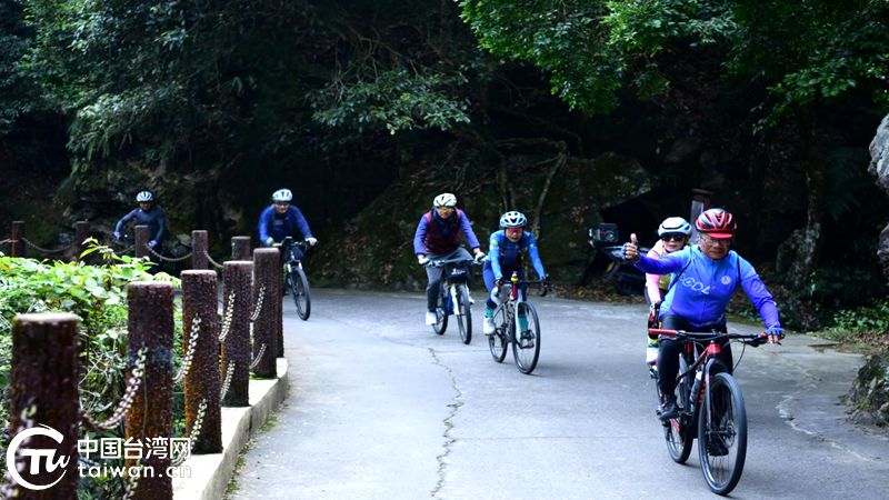 騎行隊(duì)伍在溪源庵騎行。(中國(guó)臺(tái)灣網(wǎng)發(fā))