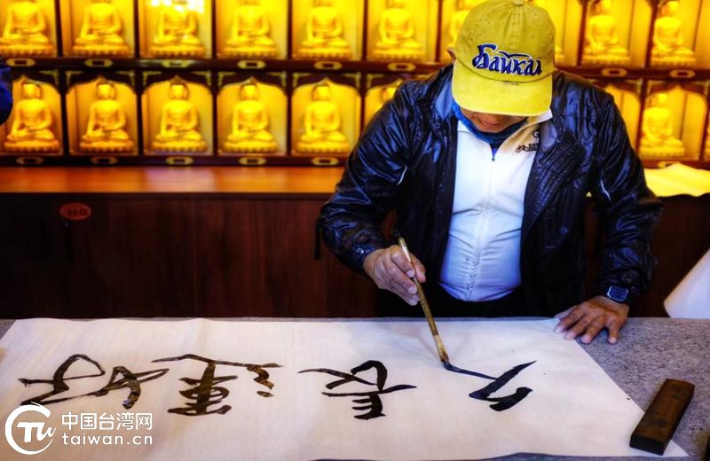 臺(tái)胞吳先生即興潑墨題字。(中國(guó)臺(tái)灣網(wǎng)發(fā))