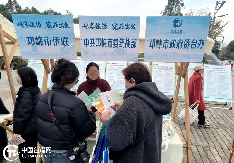 中國臺灣網12月17日訊 為深入開展“憲法宣傳周”活動,近日,成都邛崍市臺辦聯合相關單位,開展“八五”普法(第八個法治宣傳教育五年規劃)及惠臺政策宣傳活動。