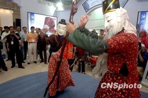 10月29日,殷商時(shí)期的閩西北原始儺舞亮相廈門文博會(huì),這種民間舞蹈古樸神秘、粗獷奔放,被人類學(xué)、歷史學(xué)及藝術(shù)學(xué)視為活化石。當(dāng)日,第二屆海峽兩岸(廈門)文化產(chǎn)業(yè)博覽交易會(huì)在廈門開幕。 中新社發(fā) 王東明 攝