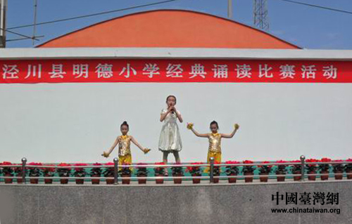 甘肅涇川縣舉辦明德小學(xué)經(jīng)典誦讀比賽活動(dòng)(圖片來(lái)源:甘肅省臺(tái)辦)