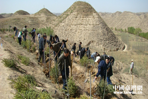 臺商臺生在甘肅“隴臺親情林”開展植樹活動。(甘肅省臺辦 李紅 攝)