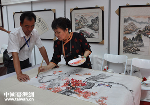 臺灣著名水墨畫家陳麗雀在隴臺書畫展現場作畫。(圖片來源:甘肅省臺辦)