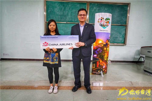 華航廣州辦事處總經(jīng)理毛禮忠則為同學(xué)們分享了他的旅游心得、并為獲得廣州往返臺北免費機票的幸運同學(xué)頒了獎,他鼓勵同學(xué)們多在旅行中增廣見聞。
