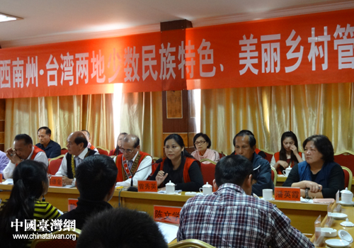 臺灣少數(shù)民族代表在會場發(fā)言。(圖片來源:黔西南州臺辦)