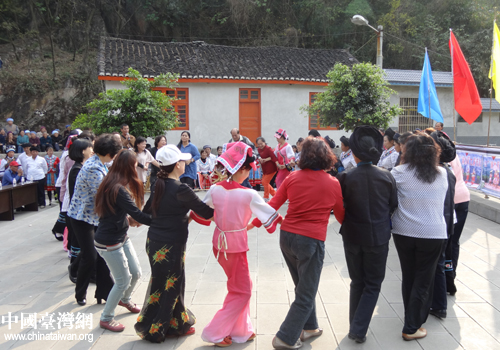 當天,參訪團在滴水社區品嘗到了濃郁的布依米酒、可口的花糯米飯,觀賞了《浪哨》、《梳花》、八音坐唱《賀喜堂》、《織布紡花送情人》、《浪哨趕表歌》等精彩紛呈的節目,還觀看了布依族傳統紡織工具——紡車等,民族風情味十足;顒又,參訪團一行還載歌載舞,參與布依族同胞們的互動,體現了兩岸一家親的濃濃親情。(中國臺灣網黔西南州臺辦通訊員 孫政文)