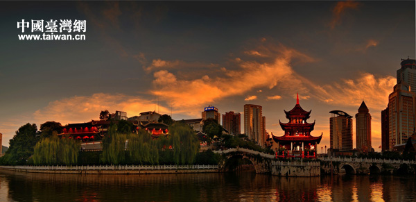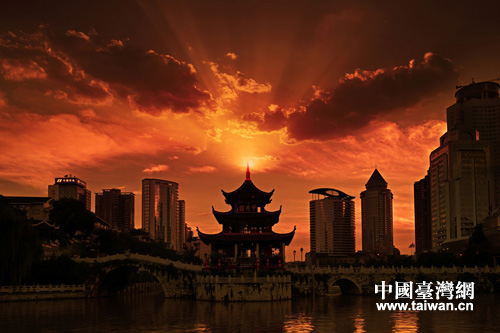 夕陽(yáng)中的甲秀樓。(圖片來(lái)源:貴陽(yáng)市臺(tái)辦)