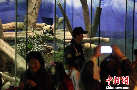 圖為與會(huì)者隔著玻璃參觀“圓仔”。 董會(huì)峰 攝