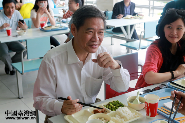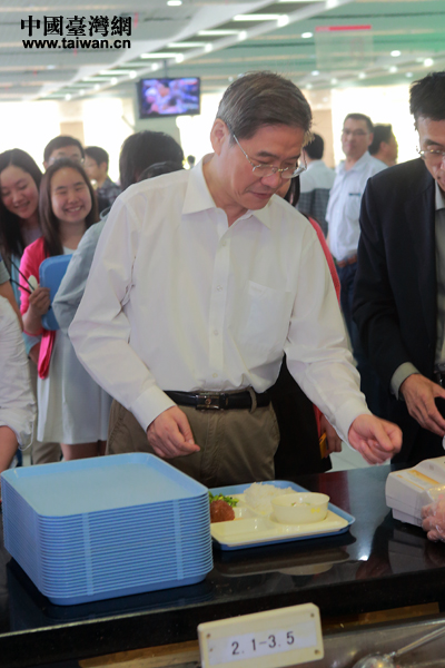 張志軍與臺灣學(xué)生一同排隊打飯(中國臺灣網(wǎng) 于斯文 攝)