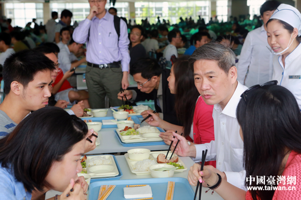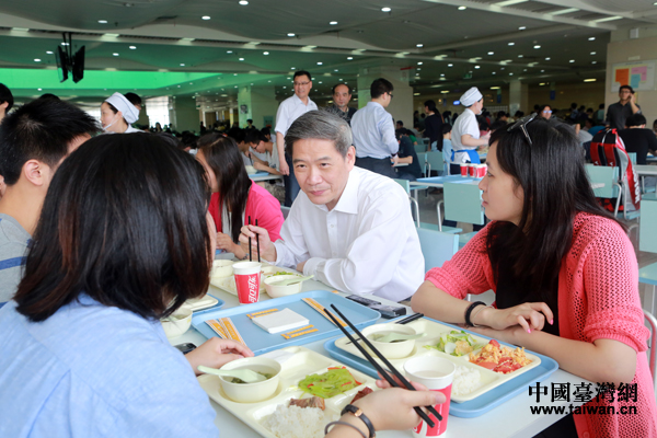中國臺灣網(wǎng)5月15日杭州消息 中共中央臺辦、國務(wù)院臺辦主任張志軍15日中午來到浙江大學(xué),與在這里就讀的臺灣學(xué)生一同排隊打飯,并在食堂餐敘。(中國臺灣網(wǎng)記者于斯文)