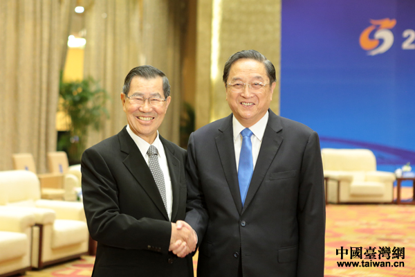 由兩岸企業家峰會主辦的2015兩岸企業家紫金山峰會3日至4日在江蘇南京舉行。中共中央政治局常委、全國政協主席俞正聲出席會議,并在會議期間會見了蕭萬長等臺灣參會主要代表。(中國臺灣網扶海濤 攝)