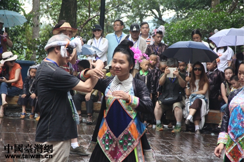 中國臺灣網7月14日黔東南訊 (記者 蕪同)“情系多彩貴州——兩岸文化聯誼行”活動進入第三天,兩岸文化界人士來到貴州黔東南苗族侗族自治州從江縣岜沙苗寨,展開一場民族風情之旅。