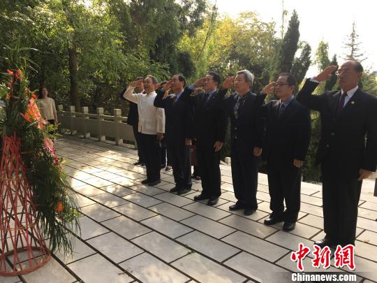 中新網(wǎng)貴陽10月27日電 (記者 楊茜)兩岸黃埔人士共祭抗日名將戴安瀾將軍活動27日在貴州省貴州市花溪公園內(nèi)的戴安瀾將軍衣冠冢處舉行。